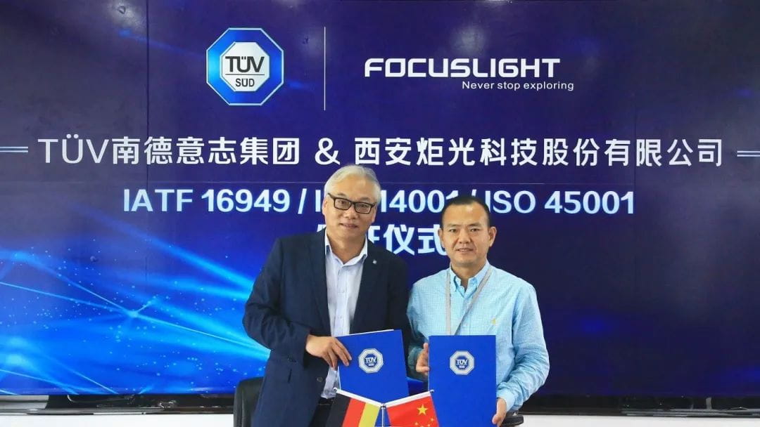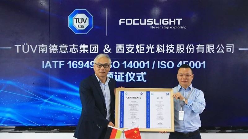 中國/西安 8月7日,TÜV南德意志集團(以下簡稱“TÜV南德”)為西安炬光科技股份有限公司(以下簡稱“炬光科技”)頒發了IATF 16949的認證證書,這標志著炬光科技在生產與服務體系兩端已經可以完全滿足汽車行業的更高標準,正式獲得了進入全球汽車行業的“通行證”。同時,TÜV南德還向炬光科技頒發了此前獲得的ISO 14001、ISO 45001以及更新后的ISO 9001證書。TÜV南德北亞區管理服務部高級副總裁孫建軍先生、炬光科技董事長兼總經理劉興勝先生等雙方領導出席了本次儀式,并簽署了在相關體系建設的戰略合作協議。