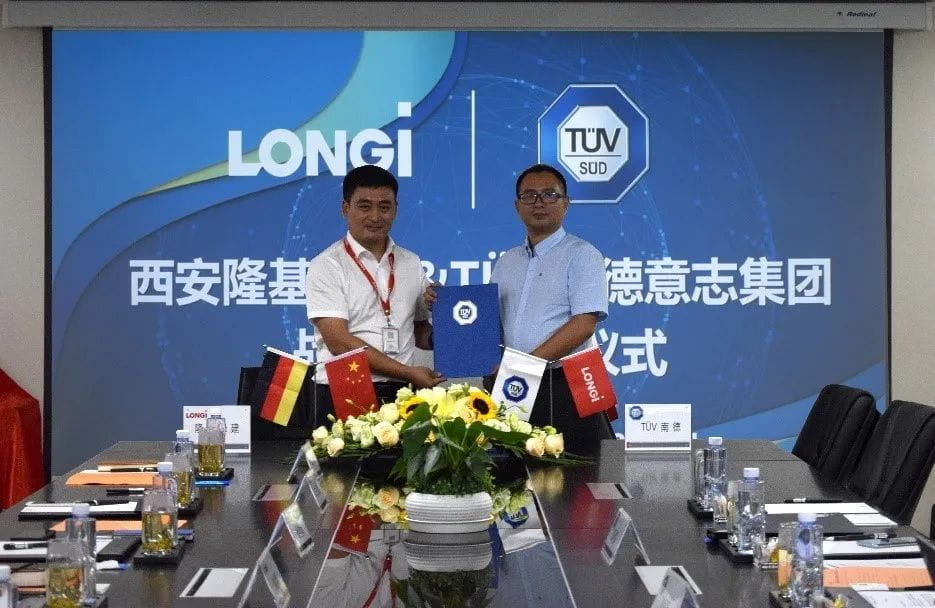 TÜV南德許海亮先生(右)與隆基綠建鐘朋格先生簽署協議