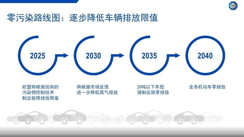 上圖為TÜV南德梳理《后歐六標準藍圖》中明確的未來歐盟零污染趨勢線路圖要求