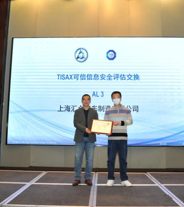 中國/上海 日前,權威第三方認證機構TÜV南德意志集團(以下簡稱“TÜV南德”)為上海匯眾汽車制造有限公司、上海翼銳汽車科技有限公司、華域視覺科技(上海)有限公司、常州星宇車燈股份有限公司頒發了TISAX(可信信息安全評估交換)AL3評估標簽。該標簽的頒發意味著這四家企業已滿足歐洲網絡交換協會(簡稱“ENX”)對于信息交互安全的認可,證實了企業自身的信息安全管理成熟度,有助于在供應鏈中提升客戶的信任。