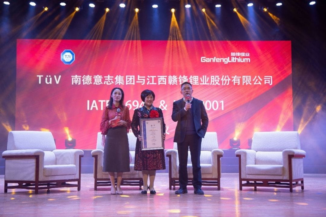 TÜV南德授予贛鋒鋰業IATF 16949 & ISO 9001認證證書
