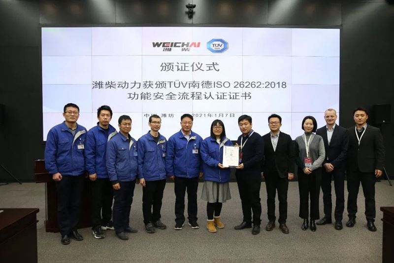 濰柴動力獲頒TÜV南德ISO 26262功能安全流程認證證書