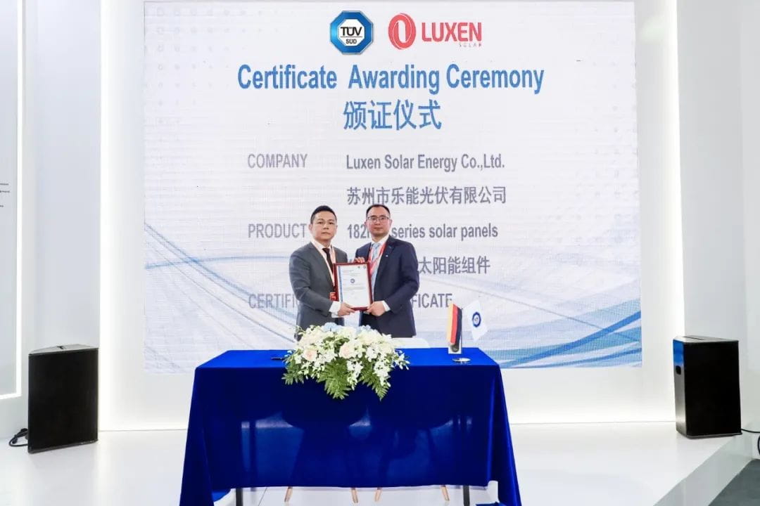 樂能光伏182雙玻系列組件獲頒TÜV南德認證證書