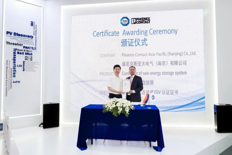 TÜV南德授予菲尼克斯新能源儲能連接器符合PPP 51090A TÜV南德認證證書
