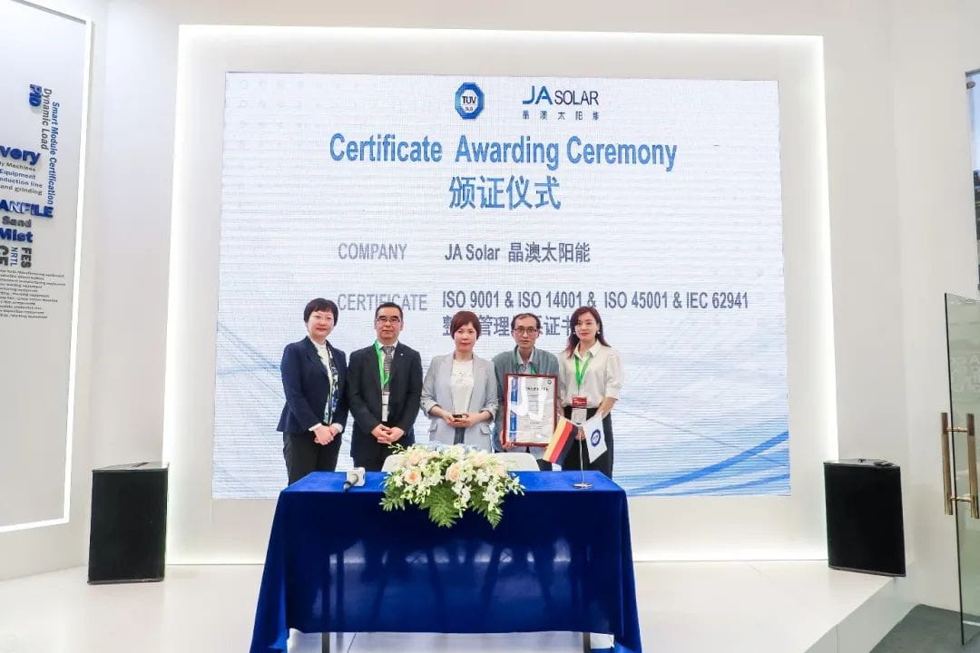 TÜV南德為晶澳太陽能頒發多張整合管理體系證書
