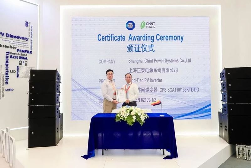TÜV南德授予正泰電源110/136kW系列光伏逆變器安規證書