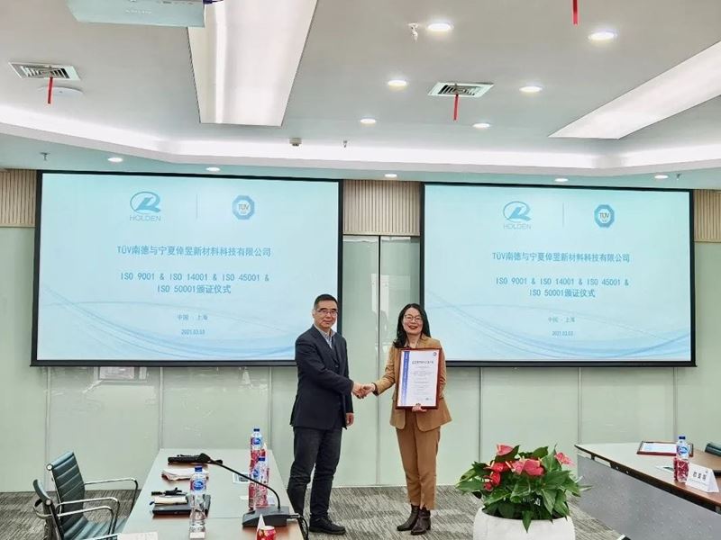 中國/上海 3月3日,TÜV南德意志集團(以下簡稱“TÜV南德”)向寧夏倬昱新材料科技有限公司(以下簡稱“寧夏倬昱”)頒發ISO 9001:2015、ISO 14001:2015、ISO 45001:2018、ISO 50001:2018涉及質量、環境、職業健康安全、能源管理體系認證證書,并于TÜV南德大中華區總部舉行頒證儀式。寧夏倬昱是上海浩登材料股份有限公司在寧夏的重要生產基地,此次寧夏倬昱獲得四大ISO標準的整合管理體系認證證書,有力地證明了寧夏倬昱在防范缺陷、控制質量波動和用能效率等方面向著業內更高標準邁出了堅實的一步,同時,對于寧夏倬昱積極推進海內外市場有著重大的意義。