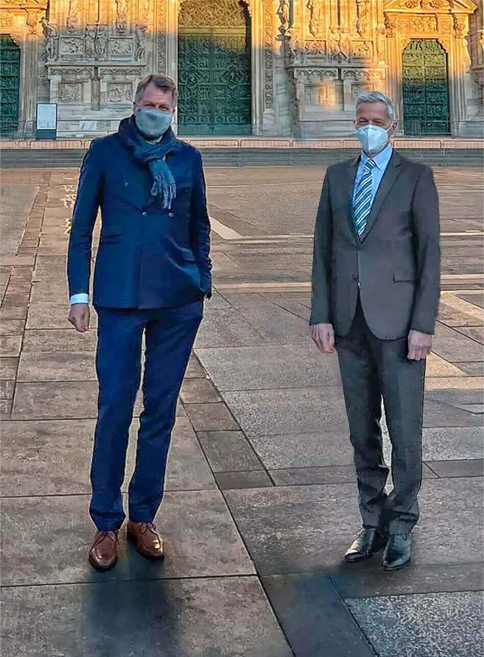 Italvolt的創始人Lars Carlstrom(左)和TÜV南德西歐CEO Oliver Jacob(右)簽署意向書
